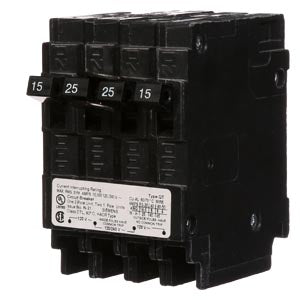 Siemens Low Voltage Residential Circuit Breakers Miniature Thermal Mag Circuit Breakers - Duplex, Triplex, Quadplex are Circuit Protection Load Center Mains, Feeders, and Miniature Circuit Breakers. Type: QT Application: Electrical Distribution Standard: UL 489 Voltage Rating: 120/240V Amperage Rating: 15-25A Trip Range: Thermal Magnetic Interrupt Rating: 10 AIC
